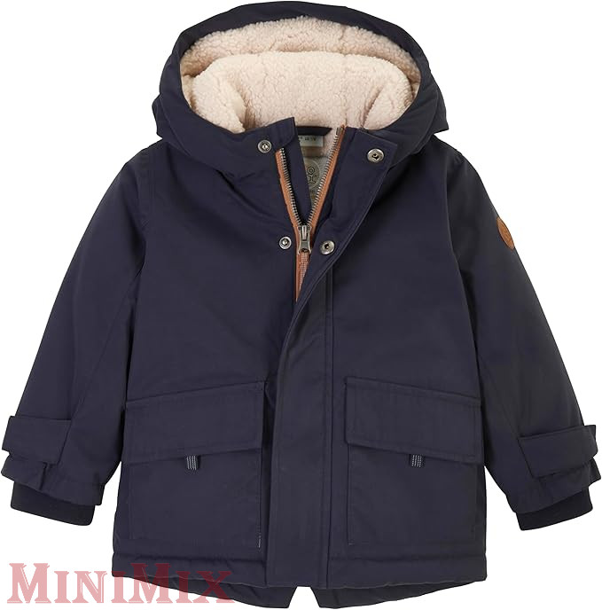 Sötét színű bélelt télikabát kisfiúknak.Anyaga: 100% poliészter