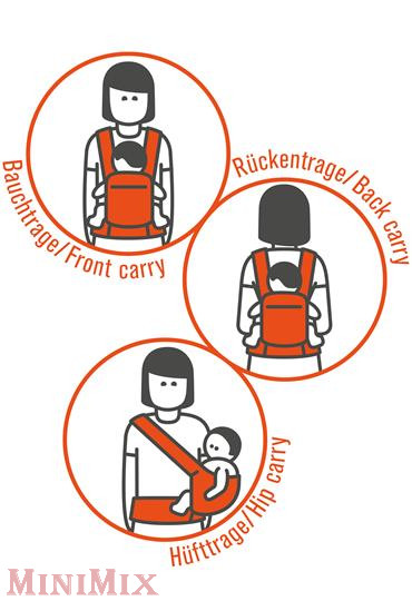 Három pozícióban viselhető – hason, háton és oldalt.